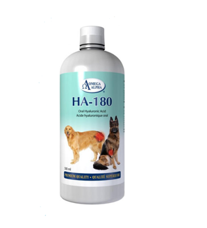 HA-180 has been specifically formulated with these particular pet joint problems in mind. Use HA-180 daily to help improve your pet’s mobility which may be impeded by injuries or arthritic conditions. Suitable for both cats and dogs, HA-180 is an easy-to-use, and better absorbed liquid formulation, with natural licorice flavour.