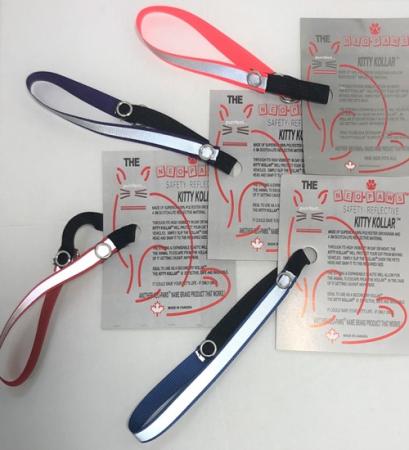 Made of superior 100% polyester grosgrain and a 3M Scotchlite® reflective material. Through its high visibility in day or night, the KITTY COLLAR™ will protect your cat from moving vehicles. Simply slip the COLLAR™ over the pet’s head and snap it to one of the two available sizes. The strong and expandable ‘break-away’ elastic allows for the animal to escape from the KITTY COLLAR™ in the case of it getting caught anywhere. Ideal to use as a secondary collar, the KITTY COLLAR™ is safe, effective and washable. It could save your pet’s life, if only once! Available in many bright colours !